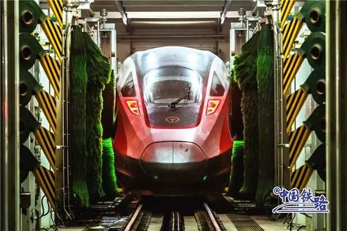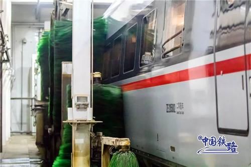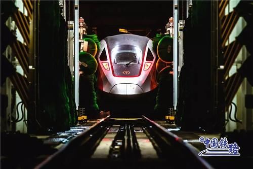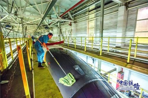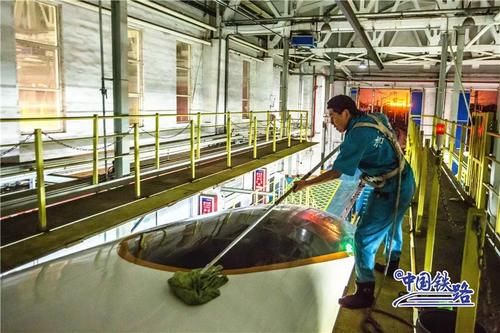 動(dòng)車組在高速運(yùn)行過程中會(huì)有灰塵污垢附著在車身上需要及時(shí)清洗洗車組的工作人員采取倒班制時(shí)刻守候列車“回家”365天全年無(wú)休24小時(shí)不間斷擦車