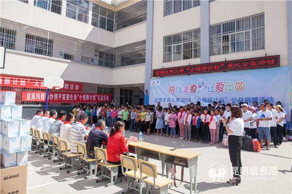 昆明信息港訊 記者甘凌菲 6月21日,富德生命人壽云南分公司2019年首場“小海豚計劃”公益活動在宜良縣花園小學(xué)舉行,該校117名貧困學(xué)生獲得總保額713.7萬元的“小海豚計劃”專屬保障捐贈和價值2.34萬元的溫暖包。