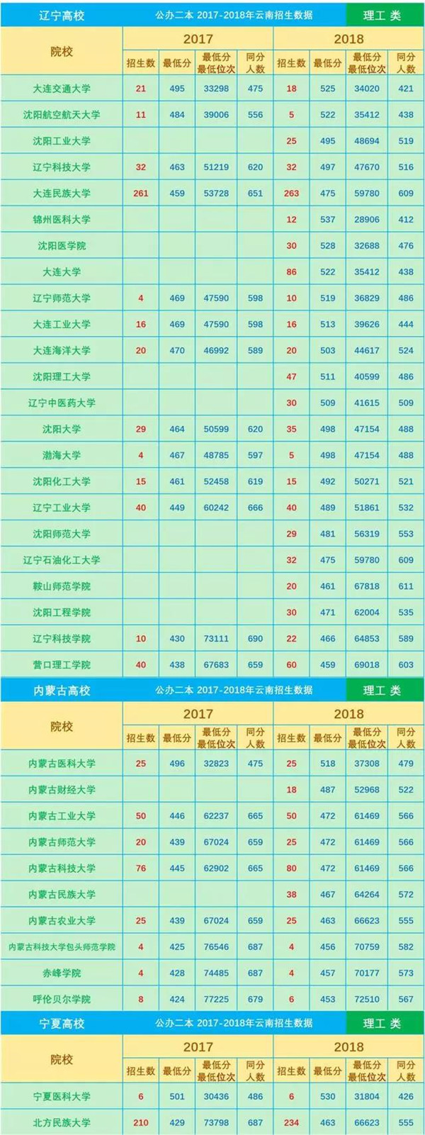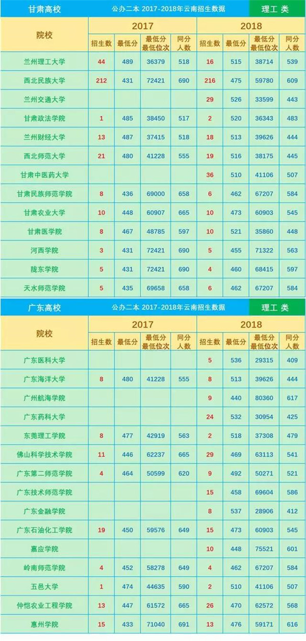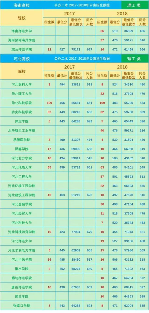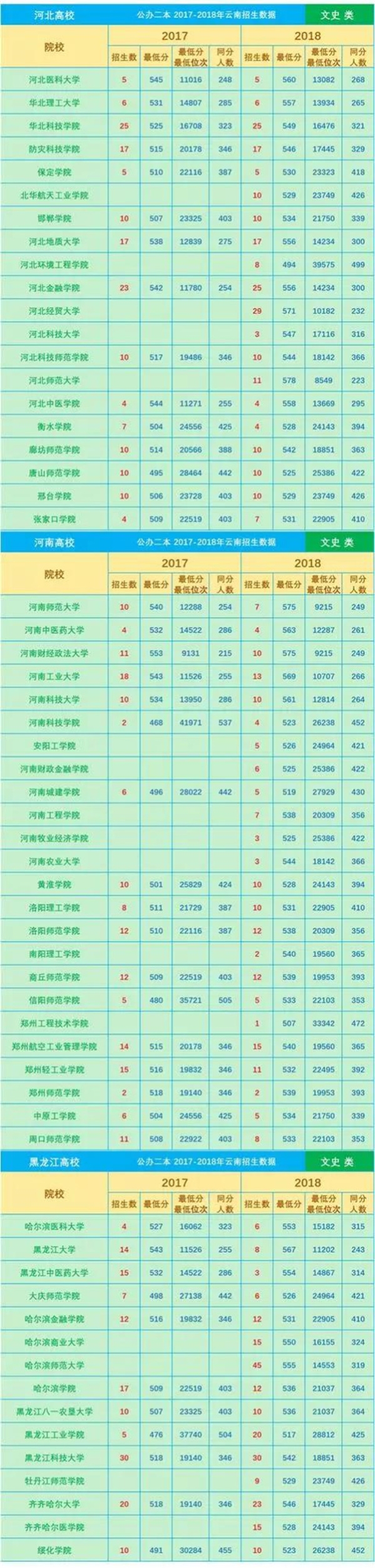 近3年分數(shù)線是填報志愿的一項重要參考數(shù)據(jù),網(wǎng)友“DaliMrXiong”特地為各位考生整理了2016—2018年云南省普通高校招生本科二批院校平行志愿錄取最低分(文理科)。