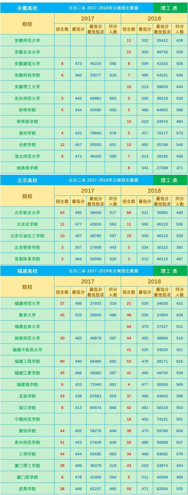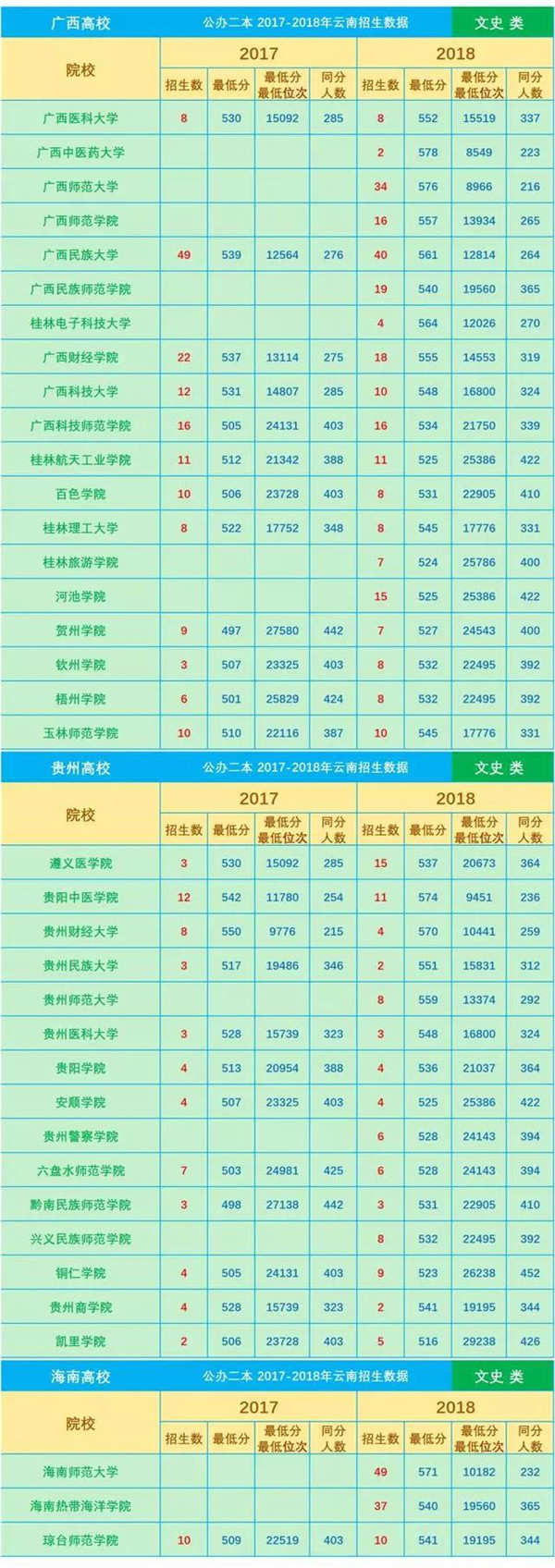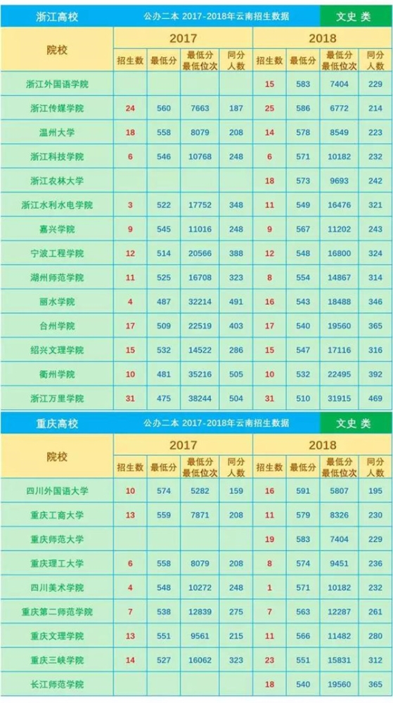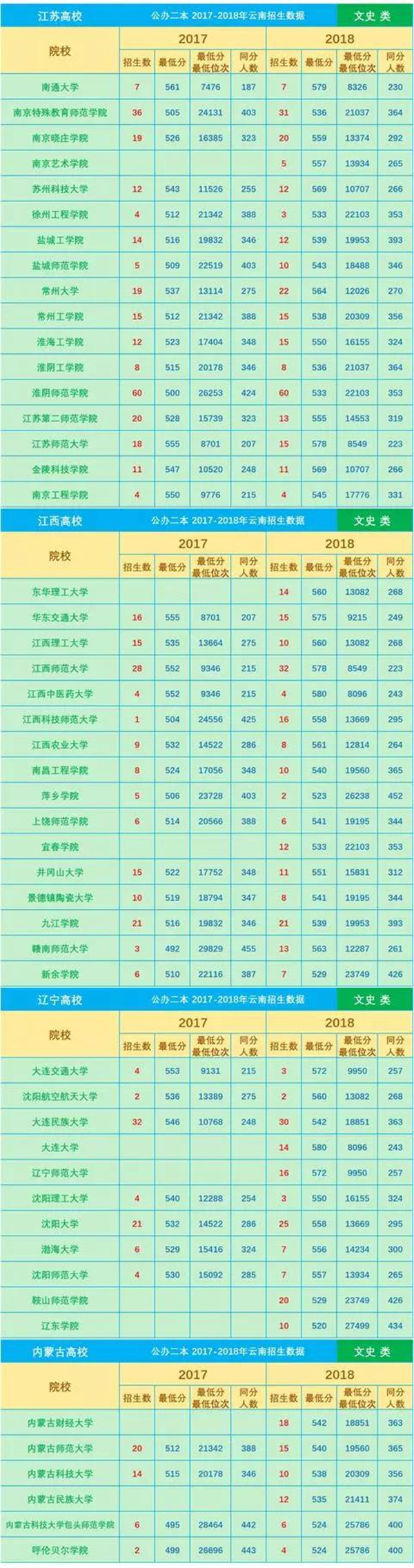 近3年分數(shù)線是填報志愿的一項重要參考數(shù)據(jù),網(wǎng)友“DaliMrXiong”特地為各位考生整理了2016—2018年云南省普通高校招生本科二批院校平行志愿錄取最低分(文理科)。