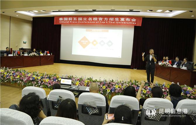 “中心從成立至今,已輸送500多名學(xué)生前往泰國前五國立名校就讀。雖然前五名校的錄取率不高,但我們中心的學(xué)生都是100%考取的。今年,有的學(xué)生更是收到了兩三所名校的錄取通知書,他們可以擇優(yōu)就讀。7月24日,我們將推出為期一周的泰國前五國立名校預(yù)科課程,免費提供給想要到泰國就讀名校的學(xué)生。讓他們提前感受和適應(yīng)泰國名校的教育體制。一周的免費課程結(jié)束后,我們會對學(xué)生進(jìn)行測試,合格的學(xué)生即可進(jìn)入預(yù)科班學(xué)習(xí),準(zhǔn)備參加明年各校的入學(xué)考試。8月份,我們也會組織預(yù)科班的學(xué)生前往泰國前五國立名校訪問,他們將受到各校院長代表團的接待,深入了解將來的大學(xué)生活,以備回國好好準(zhǔn)備預(yù)科班的學(xué)習(xí)。由于今天現(xiàn)場爆棚,很多家長未能進(jìn)入會場參加,所以五大名校院長代表團決定在7月20日晚18:30再為云南學(xué)子增加一場招生發(fā)布會。”