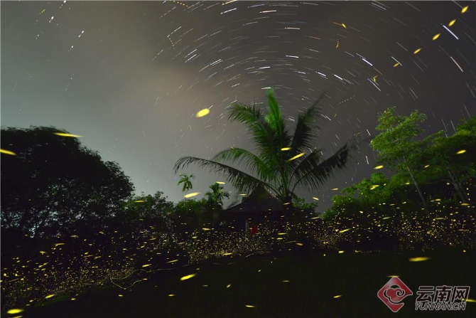 除了蓮花,盛夏的西雙版納植物園,讓人們魂牽夢系的還有那一串串閃爍靈動的螢火,它們成群結(jié)隊,宛若星河。這些小精靈裝飾著小朋友們的童年,成人的夢境。聽著小風(fēng)蟬鳴,周圍的一切仿佛都是童話故事中的美麗畫面。心馳神往的人們,踩著月光灑下的光影,開始了與螢火蟲的美好邂逅。