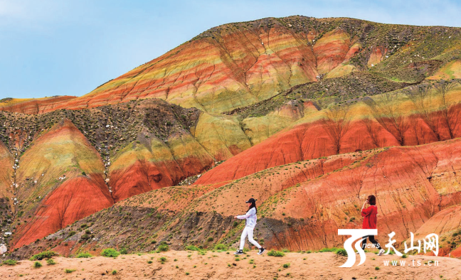 精河縣托托鎮(zhèn)匯聚了沙漠、胡楊、濕地、丹霞地貌等風(fēng)光,6月23日,參加“新疆是個(gè)好地方·達(dá)人西游第6季——踏遍勝景”網(wǎng)絡(luò)主題傳播活動(dòng)的18位資深旅游達(dá)人走進(jìn)托托鎮(zhèn)七彩紅山嘴,這里的山體“色如渥丹燦若明霞”,猶如油畫。(天山網(wǎng) 記者曹華)