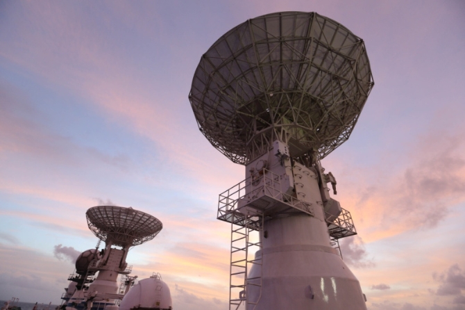 6月25日拍攝的遠(yuǎn)望3號(hào)船海上測(cè)控的雷達(dá)天線。