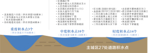 市排水公司統(tǒng)計(jì)數(shù)字顯示,連日暴雨共導(dǎo)致主城區(qū)出現(xiàn)了27處道路積水。其中,積水深度大于30厘米的重度積水點(diǎn)共3個(gè),龍泉路昆八中段(積水深度100厘米)、二環(huán)東路金馬立交至大樹營立交段(積水深度40厘米)2處道路斷交,學(xué)府路蓮花池段(積水深度40厘米);積水深度為15厘米-30厘米的中度積水點(diǎn)10個(gè),分別為紅錦路41號(hào)、海源中路與人民西路交叉口、人民西路與科華路口、北京路北辰財(cái)富中心門口、北辰大道車行天下段、灃源路落索坡段、人民東路探礦廠段、白龍路與南院路交叉口、雨龍路和甸營村段、彩云北路下穿貴昆鐵路段,道路均未斷交;積水深度為6厘米-10厘米的輕度積水點(diǎn)14個(gè),分別為紅云路(龍泉路至小康大道段)、龍泉路(財(cái)經(jīng)大學(xué)門口至金色大道段)、二環(huán)北路與盤江西路口、二環(huán)西路黃土坡立交橋、普吉路與大塘路交叉口、科華路與茭菱路交叉口、二環(huán)北路金星立交下層、北京路與霖雨路交叉口、前衛(wèi)西路與老前衛(wèi)西路口、昌宏路中林建材城段、二環(huán)東路下穿昆河鐵路段、金馬路東驤神駿小區(qū)、雨龍路199號(hào)、牛街莊下穿隧道。