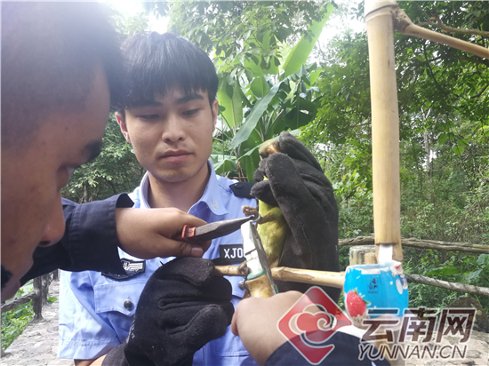 6月22日下午,西盟縣自然資源公安局把4只查獲的灰頭鸚鵡帶到野外放生。考慮到6只猴子長期被人飼養(yǎng),加上其中3只有肢體殘疾,已不具備野外生存能力,因此在6月23日將6只猴子移交給普洱野生動物臨時收容救護(hù)點進(jìn)行救護(hù)。