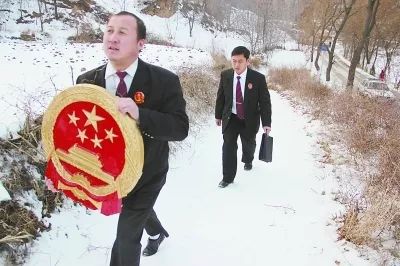 為了把法律送到偏遠(yuǎn)的老區(qū)山寨,涼水口法庭庭長(zhǎng)向恩林背著國(guó)徽走遍200多個(gè)山寨,行程5萬(wàn)余公里,辦理案件2100多件。