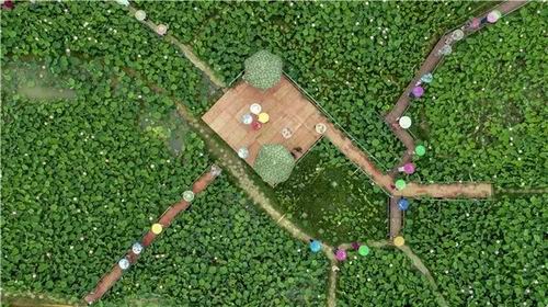 萬畝荷花灑在水面,荷葉翠綠,花色多樣,亭亭玉立。蕩舟穿行其間,清香撲鼻,令人陶醉,如置身于詩畫之中。