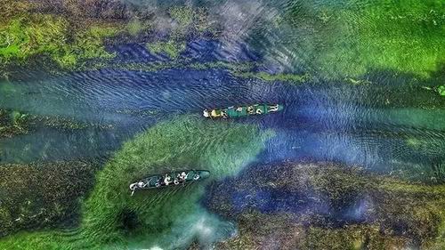 藍(lán)天碧水,泛舟穿行,