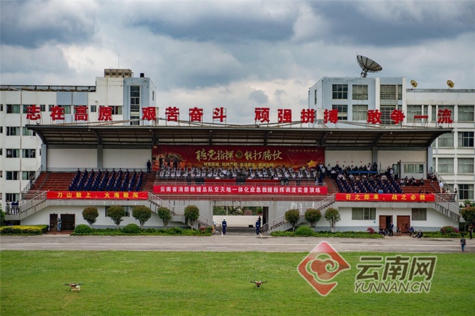 6月26日下午,我國(guó)消防系統(tǒng)首次空天地一體化應(yīng)急救援指揮調(diào)度實(shí)景演練在昆明舉行。來(lái)自全國(guó)31個(gè)消防救援總隊(duì)的80多名指揮中心主任和業(yè)務(wù)骨干,以及云南總隊(duì)新招消防員集訓(xùn)隊(duì)的隊(duì)員們?cè)谟^禮區(qū)觀摩演練。本次實(shí)景演練,旨在展示云南消防救援隊(duì)伍轉(zhuǎn)隸轉(zhuǎn)制后,主動(dòng)應(yīng)對(duì)地震等重特大災(zāi)害應(yīng)急響應(yīng)、空天一體、救援指揮體系創(chuàng)新的最新成果。