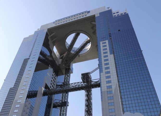 大阪梅田藍(lán)天大廈。藍(lán)天大廈是大坂府大坂市北區(qū)新梅田城的摩天大樓。地上40層樓、地下2層,高度約為173米,1993年3月完工。新華社記者杜瀟逸攝
