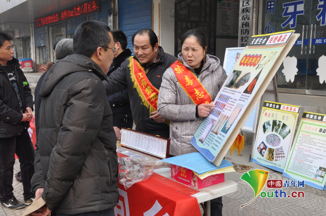 2013年李彥陳紅夫婦在街頭向過(guò)往的群眾宣傳禁毒知識(shí)。本人供圖