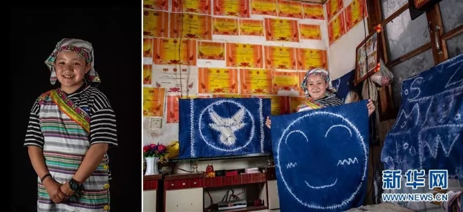 左圖:李曉娜,獨(dú)龍族,今年12歲,家住貢山縣獨(dú)龍江鄉(xiāng)獻(xiàn)九當(dāng)村,在獨(dú)龍江中心學(xué)校上五年級(jí)(6月21日攝);右圖:李曉娜在家中展示自己的扎染作品(6月21日攝)。 新華社記者 江文耀/攝