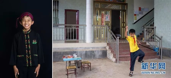 右圖:巖應(yīng)兒,布朗族,今年11歲,勐??h布朗山布朗族鄉(xiāng)老曼峨小學(xué)三年級(jí)學(xué)生(6月13日新華社記者秦晴/攝);左圖:巖應(yīng)兒在家展示他的足球(6月13日新華社記者胡超/攝)。他最大的愛好是踢足球,希望成為足球運(yùn)動(dòng)員。