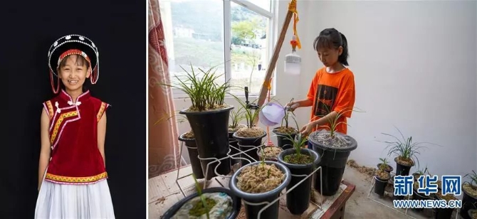 左圖:楊旭海,傈僳族,今年13歲,瀘水市大興地鎮(zhèn)維拉壩“珠海社區(qū)”六年級(jí)學(xué)生(6月24日新華社記者秦晴/攝);右圖:楊旭海在新家給蘭花澆水(6月24日新華社記者胡超/攝)。她希望長(zhǎng)大后學(xué)習(xí)園林園藝。