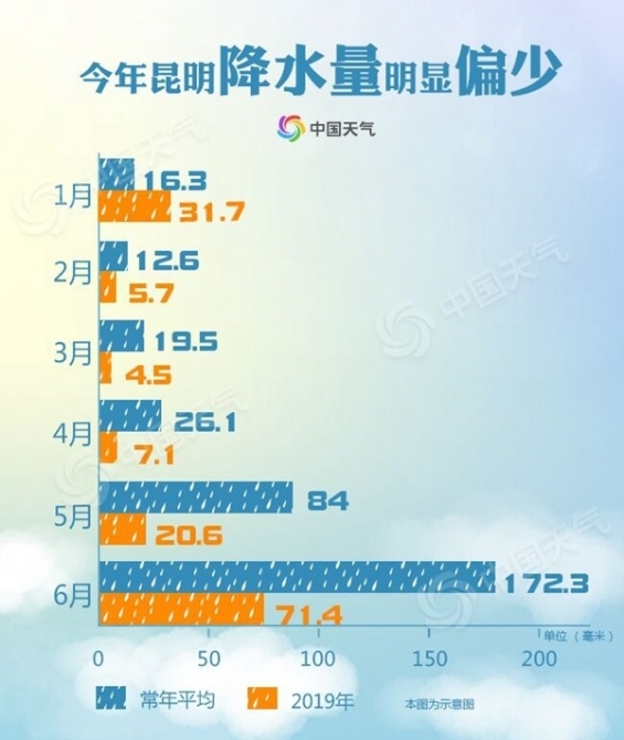 從平均最高氣溫數(shù)據(jù)來看,截至2019年6月26日,今年昆明平均最高氣溫為23.9℃,為1951年以來的最高值。