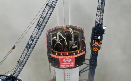 在建設(shè)過程中,中鐵大橋局相繼克服巨型沉井施工、大體積混凝土灌注、超高橋塔混凝土抗裂等施工難題,采用DOKA液壓爬模體系,合理布置大型塔吊,在確保工程質(zhì)量前提下,大幅縮短施工時間,創(chuàng)造了超高空主塔快速施工新紀錄。