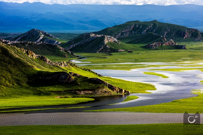 新疆的草原之美與內(nèi)蒙古大草原的“一望無際”有所不同,因為地形多變的緣故,新疆的草原充滿了變化,它涵蓋了高山、峽谷、濕地、丘陵等多種類型的地貌,背景又往往有雄渾的雪山做映襯,因此具有極高的觀賞價值。