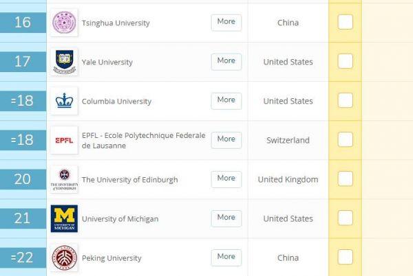 據(jù)美國雅虎新聞網(wǎng)站6月18日報道,在英國QS全球教育集團19日發(fā)布2020年QS世界大學(xué)排名中,清華大學(xué)和北京大學(xué)均躋身前三十,分別位列第十六和第二十二,這也是目前為止, 兩所大學(xué)均取得史上最高名次。
