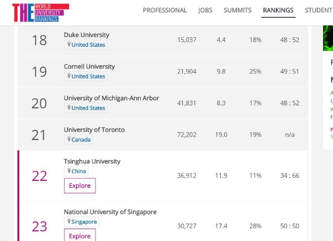 在2019年泰晤士高等教育世界大學(xué)排行榜中,清華大學(xué)超新加坡國立大學(xué),成為排名最高的亞洲大學(xué)。