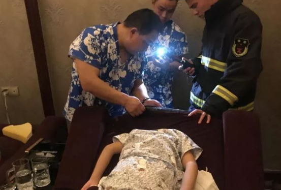 今年2月,湖北一個(gè)孩子因貪玩,把頭卡到汗蒸會(huì)所木質(zhì)的沙發(fā)洞里,消防到場(chǎng)后,對(duì)沙發(fā)洞口的木質(zhì)結(jié)構(gòu)進(jìn)行了拆解,才把孩子救了出來。