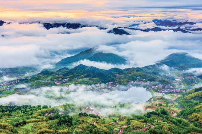 浙江“千萬(wàn)工程”自2003年啟動(dòng)以來(lái),始終堅(jiān)持“綠水青山就是金山銀山”的發(fā)展理念,扎實(shí)推進(jìn)農(nóng)村人居環(huán)境整治,造就了萬(wàn)千美麗鄉(xiāng)村。圖為風(fēng)景如畫(huà)的杭州市桐廬縣舊縣街道合嶺村。 浙江省農(nóng)辦供圖