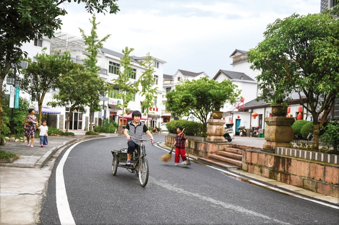 浙江“千萬(wàn)工程”從抓好道路硬化、路燈亮化、衛(wèi)生潔化、村莊綠化、河道凈化開(kāi)始,大力推進(jìn)農(nóng)村人居環(huán)境整治,村容村貌和農(nóng)村生態(tài)環(huán)境發(fā)生了深刻變化。圖為杭州市淳安縣楓樹(shù)嶺鎮(zhèn)下姜村村民在干凈整潔的村莊里騎行。 新華社記者 黃宗治/攝