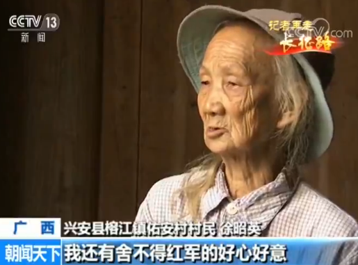 興安縣榕江鎮(zhèn)佑安村村民 徐昭英:有感情 。紅軍是爹,他們是媽。我就在這里,我還有舍不得紅軍的好心好意。