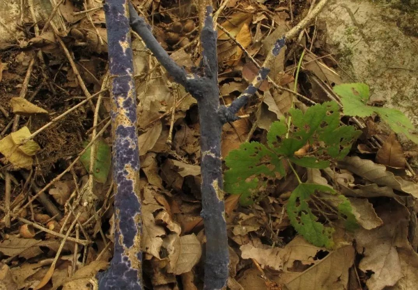 生于掉落枯枝上的藍(lán)革菌