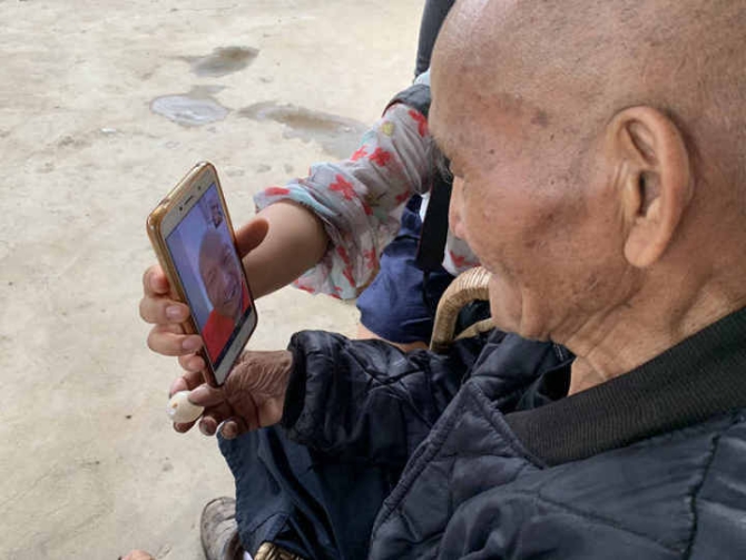 中午時(shí)分,我們與裴海清在成都的家人聯(lián)系上,通過(guò)微信視頻電話(huà),裴海清和他的弟弟及家人打招呼。