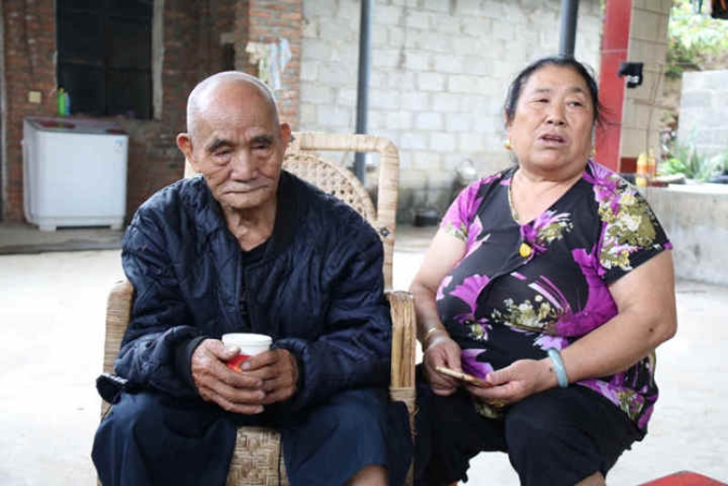 車(chē)子從怒江州府所在地到裴海清的家瀘水市六庫(kù)鎮(zhèn)新寨村丙舍村民小組,也就20分鐘左右的車(chē)程。但順著大路旁邊的一條小路,穿過(guò)布滿(mǎn)雜草的小徑,走了近10分鐘才找到他的家。走進(jìn)院門(mén),裴海清靜靜地坐在屋前的椅子上?!奥?tīng)說(shuō)你們要來(lái),他今天一早就換好衣服等著你們,趕緊進(jìn)來(lái)坐!”他的兒媳婦左李會(huì)熱情地向我們打招呼。