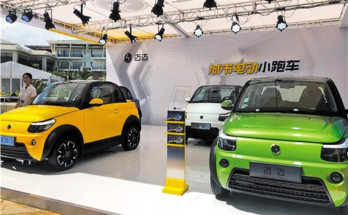 世界新能源汽車大會展示區(qū),賽麟汽車展出旗下首款城市微型電動車邁邁。記者郭靜原攝