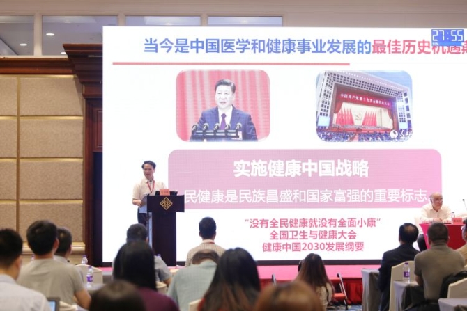▲6月29日,中國精準心血管病學峰在京舉行。圖為中國科學院院士賀福初以“蛋白質(zhì)組學驅(qū)動的精準醫(yī)學”為題做報告。