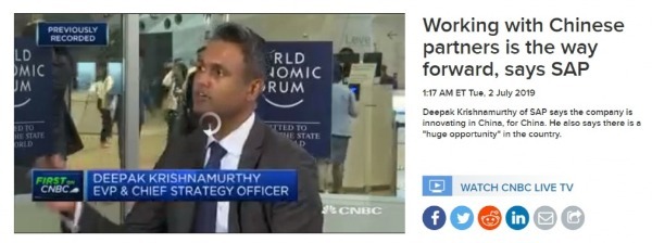 在中國大連舉行的夏季達沃斯論壇上,思愛普執(zhí)行副總裁迪帕克·克里希納穆爾蒂(Deepak Krishnamurthy)表示:“我們相信這種合作模式?!?/p>