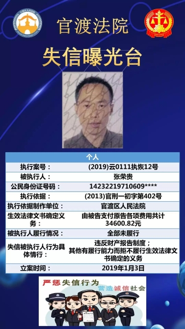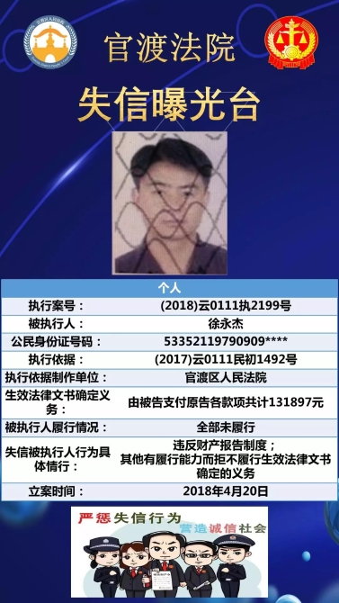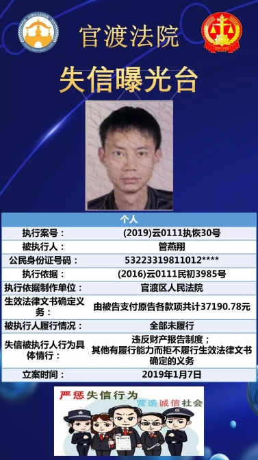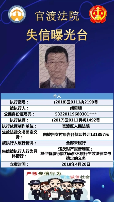 官渡法院失信被執(zhí)行人名單