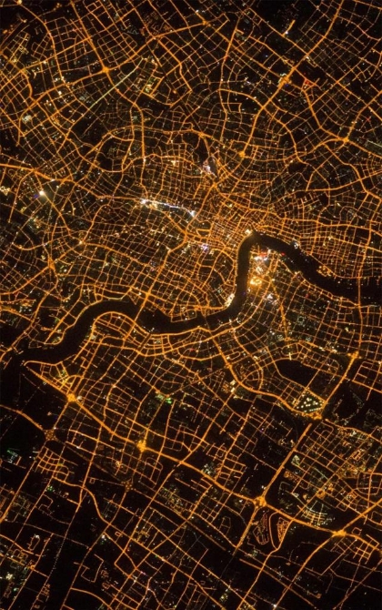 ▼上海夜晚衛(wèi)星圖,燈火通明的城市,圖片來源@NASA