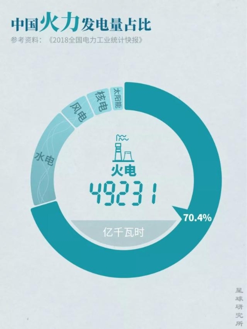 ▼2018年中國火力發(fā)電量占比,制圖@鄭伯容/星球研究所
