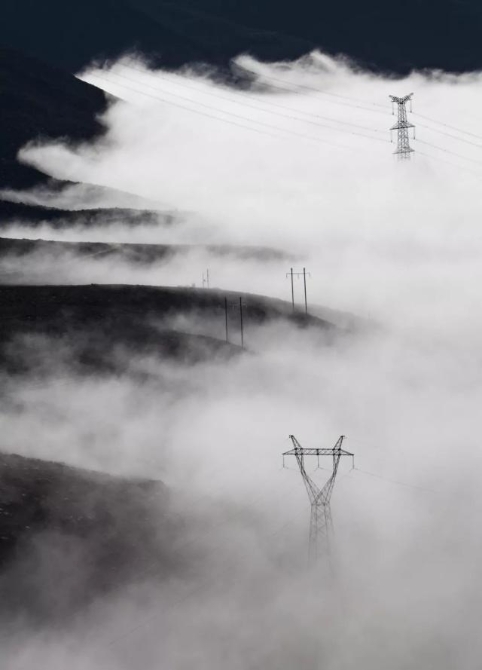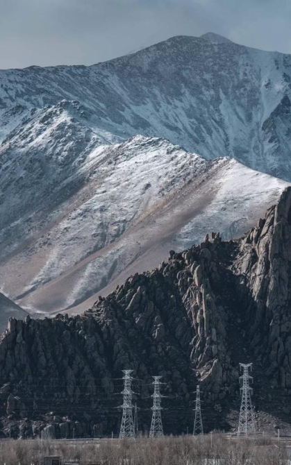 ▼跨越天山的高壓輸電塔,攝影師@劉辰