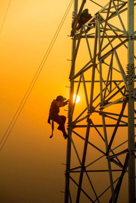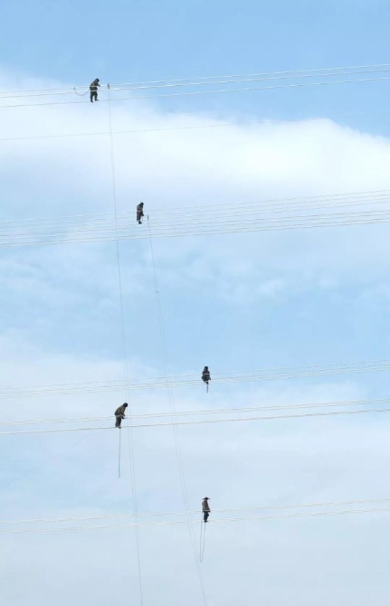 ▼2018年4月28日,國家電網(wǎng)日照供電公司工人架設叩官鎮(zhèn)至兩城高鐵預留站高壓線路,確保兩城高鐵站投入使用后的電力供應,攝影師@高興建
