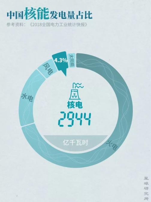 ▼2018年中國核能發(fā)電量占比,制圖@鄭伯容/星球研究所