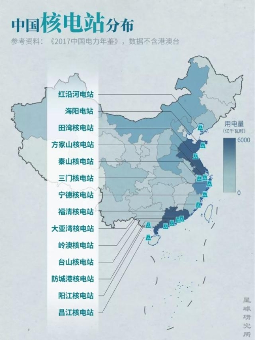▼中國核電站分布,制圖@鄭伯容&鞏向杰/星球研究所