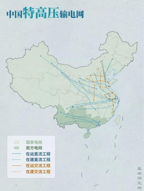 ▼中國特高壓輸電網(wǎng)絡,制圖@鄭伯容&鞏向杰/星球研究所