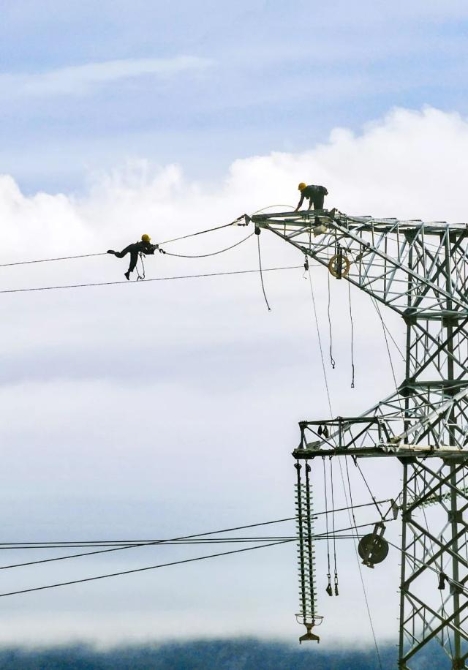 輸電線路翻越高山峽谷