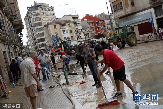 當(dāng)?shù)貢r(shí)間7月9日,西班牙塔法利亞,當(dāng)?shù)卦庥鰪?qiáng)降雨侵襲,一片狼藉。(圖片來(lái)源:視覺(jué)中國(guó))