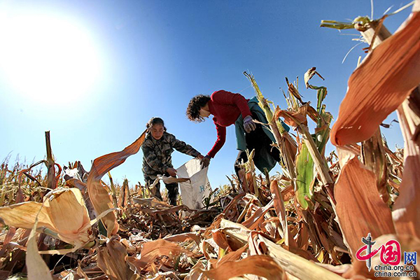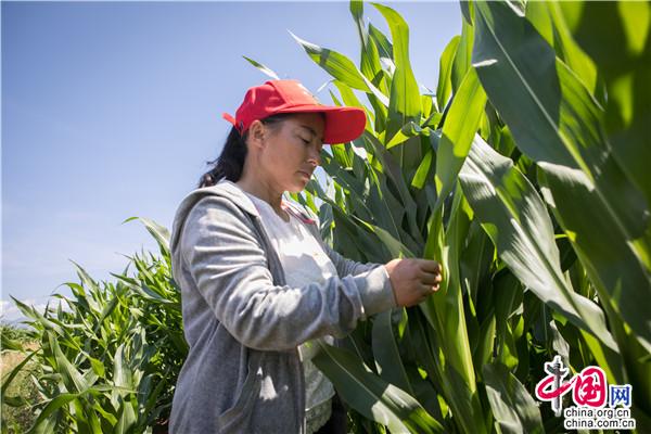 王平到地里查看玉米長(zhǎng)勢(shì)情況。中國(guó)網(wǎng)記者 倫曉璇 攝