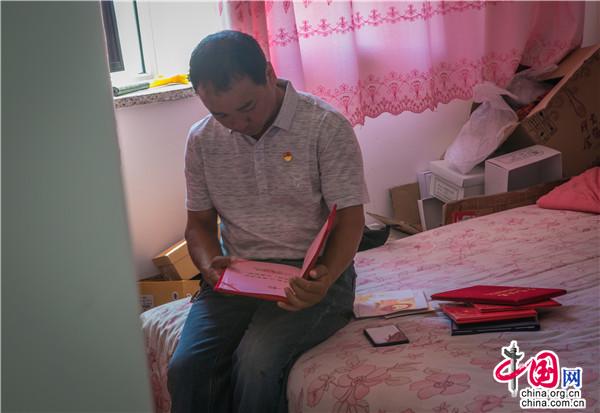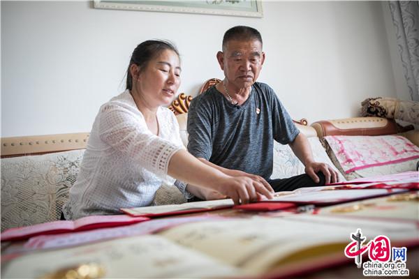 王平丈夫黃應(yīng)明翻看妻子的證書(shū)。中國(guó)網(wǎng)記者 倫曉璇 攝