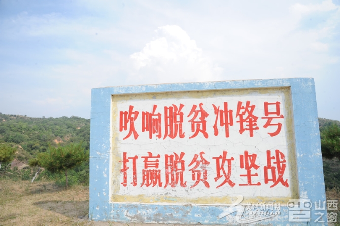 圖為革命老區(qū)左權(quán)縣,太行山上豎起的脫貧攻堅(jiān)戰(zhàn)標(biāo)語。記者侯津剛攝。