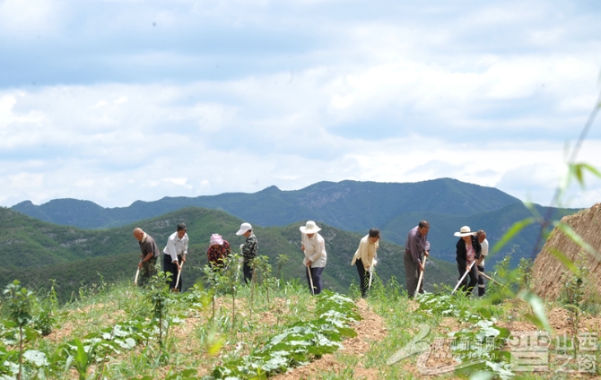 7月6日,昔陽縣界都鄉(xiāng)柏葉底村北山上,70歲的王愛仁(左二)正和村民在這里鋤草,遠(yuǎn)遠(yuǎn)看去,猶如一幅田園畫。山上的美景讓人賞心悅目,村里的前景更加振奮人心。以這片山為中心,集休閑度假、觀光旅游、采風(fēng)寫生、餐飲住宿、登山徒步、果菜采摘為一體的摩天垴田園綜合體正在崛起,柏葉底村昔日沒人要的荒地,如今成了村民們脫貧致富的“寶地”。記者侯津剛攝。