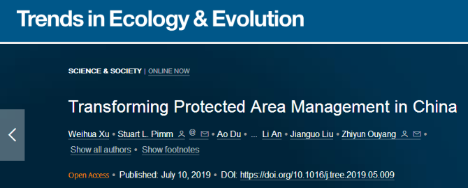 7月10日,《中國實施自然保護地管理改革》一文在國際期刊《生態(tài)學(xué)與進化趨勢》上發(fā)表。