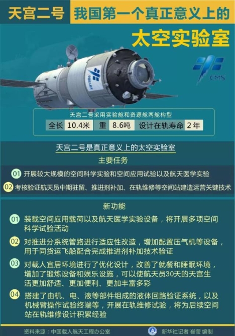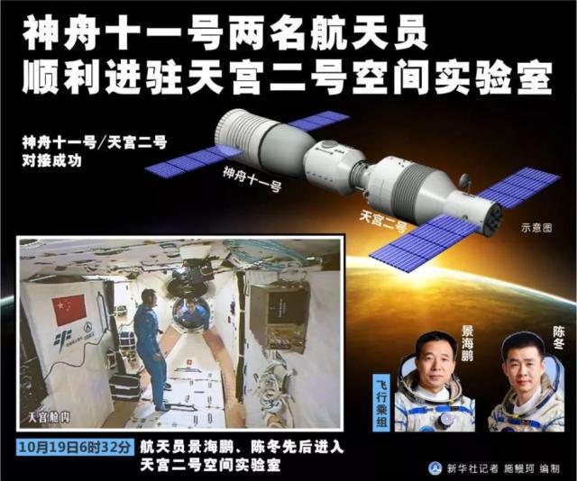 2016年10月19日,神舟十一號兩名航天員順利進駐天宮二號空間實驗室。